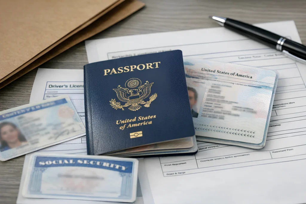 A valid passport is the only document that proves both your identity and foreign status by itself. If you don’t have a passport, you’ll need at least two of the following: